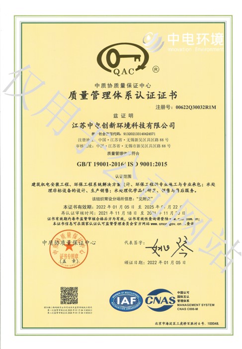 质量管理体系认证证书