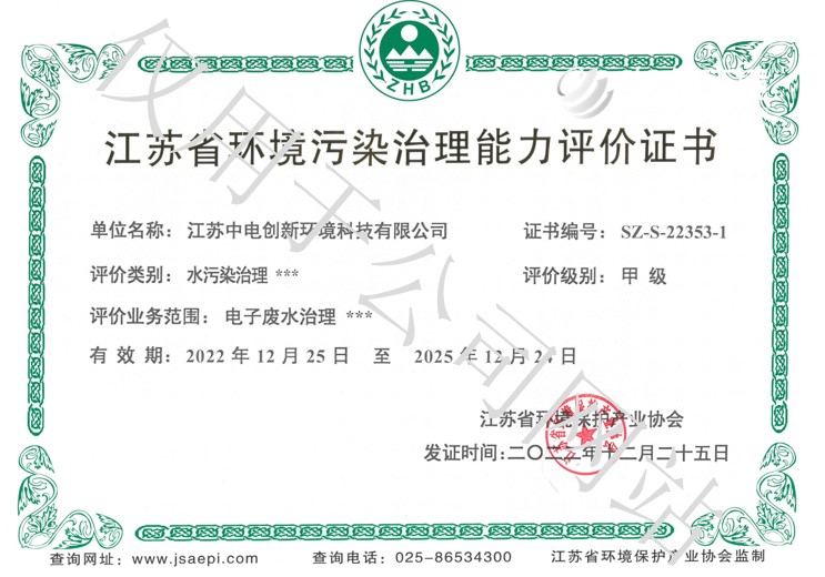 江苏省环境污染治理能力评价证书 (废水甲级 、废气乙级)